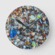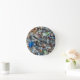 Wall clock featuring a colourful mix of sparkling blue, green, orange and clear sea glass on a sandy shore. Fun decor for a beach house or beach lover. Photo taken at the famous Glass Beach, Fort Bragg, California.