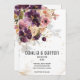 A modern and elegant burgundy purple and mauve watercolor floral bouquet with it's shadow softly spilling onto the invitation and sparkling gold splashes and elements, with your first names in a modern font with a numerical wedding date underneath and a small font for the details. This luxury violet purple and mauve invitation is suitable for any occasion.