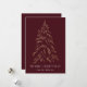 Modern & elegant holiday card featuring a snowy faux gold foil pine tree with a burgundy background (or color of your choice). "Merry Christmas" is displayed in a white, modern serif font with your name or custom text below. The non-photo holiday card reverses to display three golden pine trees with your custom message below in white text. This design is perfect to use as your family Christmas card or business/corporate holiday card.