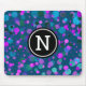 Sparkly blue purple confetti dots on teal monogram mouse mat