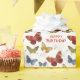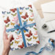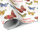 Beautiful glittery butterflies in various colours fly across the surface of this pretty birthday gift wrap paper. It's hard to see all the details, but the paper is overlaid with gold sparkle "dust" and little gold stars appear between the butterfly images. Your custom text is in red, and it's easily personalised or changed to anything you'd like. Very pretty for kids or adult birthdays.