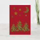 Personalise, Hand-cut golden sparkle Christmas tree, christmas spruce, moon, stars on dark red on greetings card. Every things you see on the products are hand made, but you must know that you get a photo!