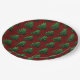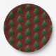 Sparkly Christmas tree green Dark red pattern Paper Plate