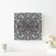 Sparkly colourful silver mosaic Mandala w numbers Square Wall Clock