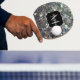Personalise sparkly ping pong equipment with your initial and name. Beautiful glamourous silver shiny glitters sparkles. Photo of silver mosaic sparkles not actual glitter!