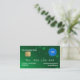 This business card looks like a credit card, with green hues and bright sparkles forming the background. Your name can title will appear in the same position as in a credit card. You can customise the look to your desire.
