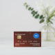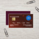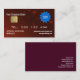 This business card looks like a credit card, with maroon hues and bright sparkles forming the background. Your name can title will appear in the same position as in a credit card. You can customise the look to your desire.