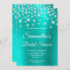 Sparkly Diamond Turquoise Satin Foil Bridal Shower Invitation