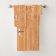 Sparkly elegant orange bamboo wood print Monogram Bath Towel Set