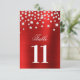 Sparkly Faux Silver Diamonds Red Table Number