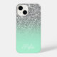 Create your own personalised faux silver bokeh sparkles glitter and mint green ombre case.