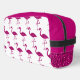 Sparkly flamingo Pink faux sparkles custom white Monogram Toiletry Bag. Monogram Personalise with your custom initial and name. Fun faux sparkly fashionable summer Accessories for her. Beautiful girly glamourous pink shiny glitters sparkles summer exotic flamingo bird. Photo of pink sparkles, not actual glitter! No messy glitter to the touch!