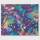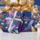 Sparkly Glittery Purple Blue and Gold Leaves Wrapping Paper