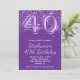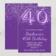 Sparkly Glittery Royal Purple Number 40 Birthday Invitation
