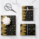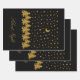Sparkly gold Christmas tree, moon, stars on black Wrapping Paper Sheet