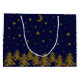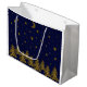 Sparkly gold Christmas tree, moon, stars on blue Large Gift Bag