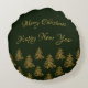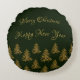 Sparkly gold Christmas tree on green Christmas Round Cushion