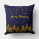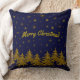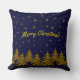 Sparkly Gold Christmas tree, stars, snow on blue T Cushion