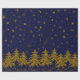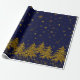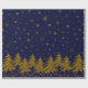 Sparkly Gold Christmas tree, stars, snow on blue Wrapping Paper