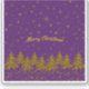 Sparkly Gold Christmas tree, stars, snow on purple