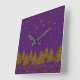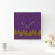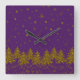 Sparkly Gold Christmas tree, stars, snow on purple Square Wall Clock