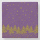 Sparkly Gold Christmas tree, stars, snow on purple Stone Coaster