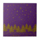 Sparkly Gold Christmas tree, stars, snow on purple Tile