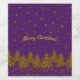 Sparkly Gold Christmas tree, stars, snow on purple Wine Label