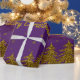 Sparkly Gold Christmas tree, stars, snow on purple Wrapping Paper