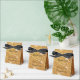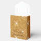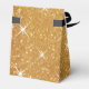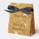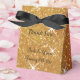 Gold glitter glamourous wedding party favour box. Personalised text for thanking guests. Custom thank you message from bride and groom. Golden glittery print with sparkly sparkles and glimmers plus elegant black ribbon bow. Customisable text. Luxury glitzy theme design with stylish typography. Great for fancy marriages.