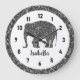 Sparkly grey Elephant Custom name Wall Clock. Personalise Sparkly black and white Elephant Wall Clock with white circle and black numbers. Beautiful glamourous grey shiny glitters sparkles Elephant. Photo of sparkles not actual glitter!