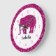 Sparkly hot pink Elephant Custom name Large Clock