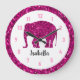 Sparkly hot pink Elephant Custom name Wall Clock. Personalise Sparkly pink Elephant Wall Clock with white circle and pink numbers. Beautiful glamourous hot pink shiny glitters sparkles Elephant. Photo of pink sparkles not actual glitter!