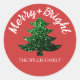 Sparkly Merry bright Christmas tree Custom name Classic Round Sticker