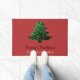 Sparkly Merry Christmas tree green Family name red Doormat. Custom Outdoor Décor with sparkly Christmas tree and text Merry Christmas. Photo of sparkles, not actual glitter.