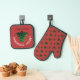 Personalise Unique and festive Christmas Red and green Oven Mitt & Pot Holder Set. Christmas gift with sparkly Christmas tree with green sparkles. Photo of sparkles not actual glitter.