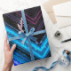 Abstract sparkly metallic blue, purple, pink, black, red galaxy lines.