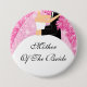 Trendy Pink Sparkly bride wedding party buttons for your bridal party. Our bridal party buttons feature a bride & groom set on a sparkly mosaic tile print background. Just customise with your information and you're all set to go. Available in our shop @ www.celebrateitwedding.com in additional colours! Matching bridal shower invites, thank you notes and stickers are also available.