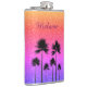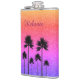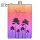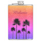A touch of sparkly glamour on colourful, personalised hip flask decorated with palm tree silhouettes.