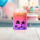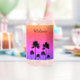 A touch of sparkly glamour on colorful, personalised glass decorated with palm tree silhouettes.