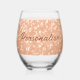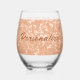 Sparkly peach faux sparkles Custom text Stemless Wine Glass