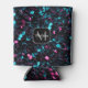 Sparkly pink blue mosaic glitter sparkle Monogram Can Cooler
