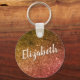 Faux sparkly nebula personalised keychain for her featuring a pink and orange background depicting shining and sparkling stars and an off white distressed custom name Elizabeth that you can personalise and change into your name or any custom name you wish to use.