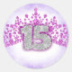 This sparkly purple and pink tiara sticker is a beautiful addition to your quinceanera invitations, return-address labels, and thank you cards. Choose between sizes and styles in this collection. Easily customise this crystal glitter and gemstone design for any birthday celebration.