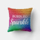 Sparkly Rainbow Gradient Glitter Born to Sparkle Cushion