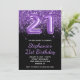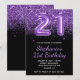 Sparkly Royal Purple Glitter Black Number 21 Invitation