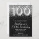 Sparkly Silver Glitter Black 100th Birthday Invitation