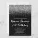 Sparkly Silver Glitter Black 21st Birthday Invitation