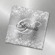 Faux shiny silver glitter with sparkles against a faux silvery grey ombre brushed metal foil graphic image.