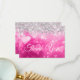 Sparkly Silver Glitter Pink Gradient Hearts Thank You Card